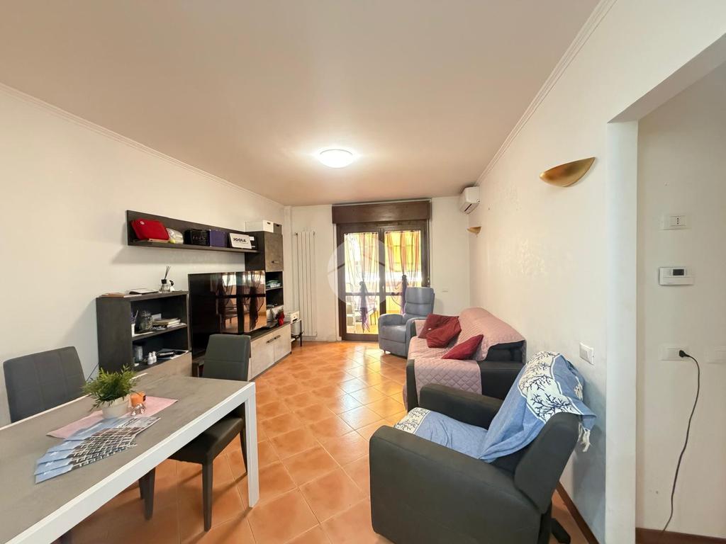 All’interno, la disposizione degli ambienti è funzionale e accogliente: l’ingresso conduce a un soggiorno luminoso, la cucina è separata e abitabile, ideale per chi ama cucinare in totale comodità, mentre la zona notte ospita una camera matrimoniale, una seconda camera e due bagni, uno finestrato e l’altro cieco. La casa, già pronta per essere abitata, offre inoltre la possibilità di trasformarsi facilmente in un quadrilocale, adattandosi così alle esigenze di una famiglia in crescita.