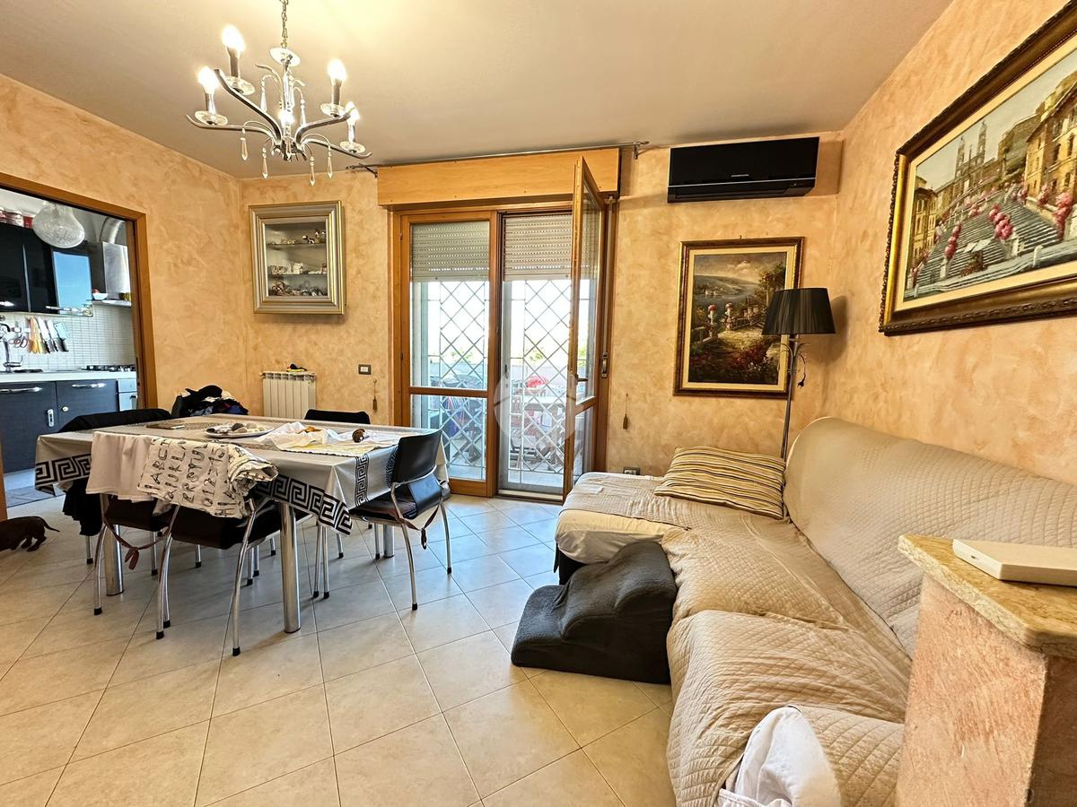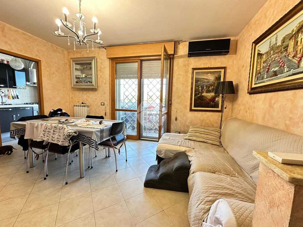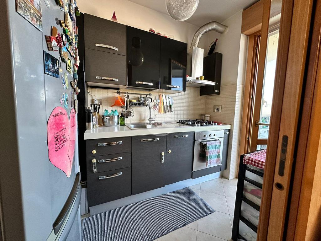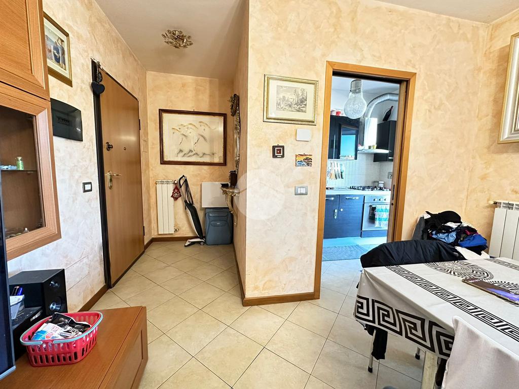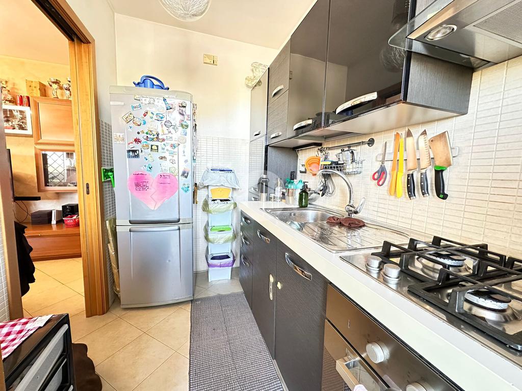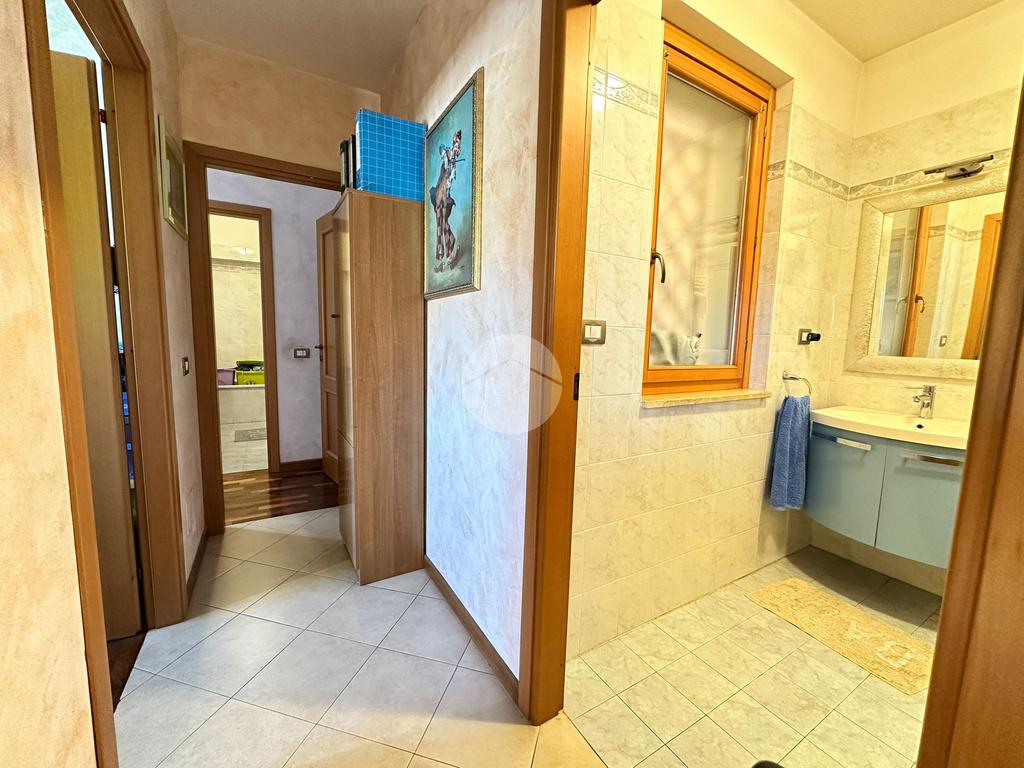 L’ingresso si apre su un ampio e luminoso soggiorno, cuore della casa, ideale per accogliere ospiti o vivere momenti di relax grazie agli spazi ben distribuiti e alla piacevole continuità con l’esterno. Da qui si accede al grande terrazzo, vero valore aggiunto dell’abitazione, perfetto per pranzi all’aperto, cene estive o semplicemente per godersi un angolo di tranquillità all’aria aperta.