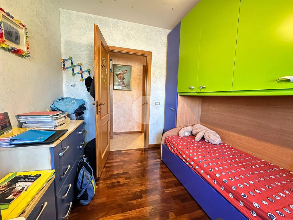 La cucina separata garantisce praticità e funzionalità, mentre la zona notte è composta da una comoda cameretta, un bagno principale e una spaziosa camera matrimoniale con bagno privato.