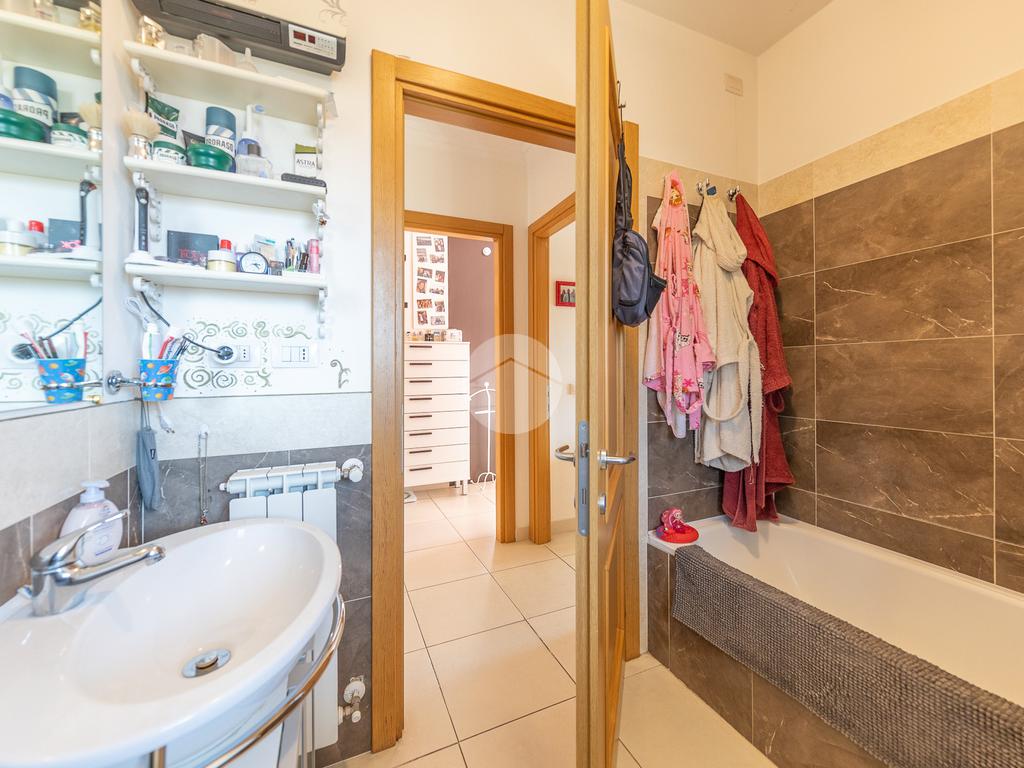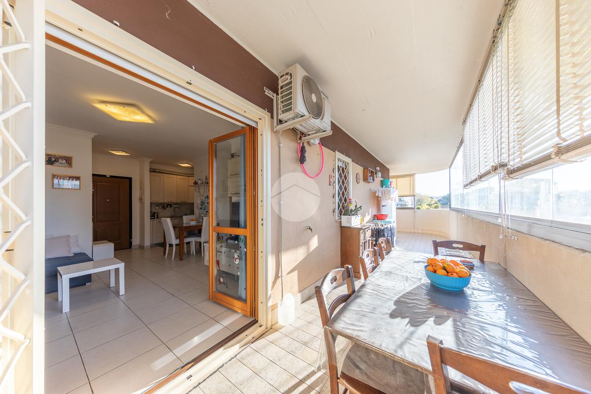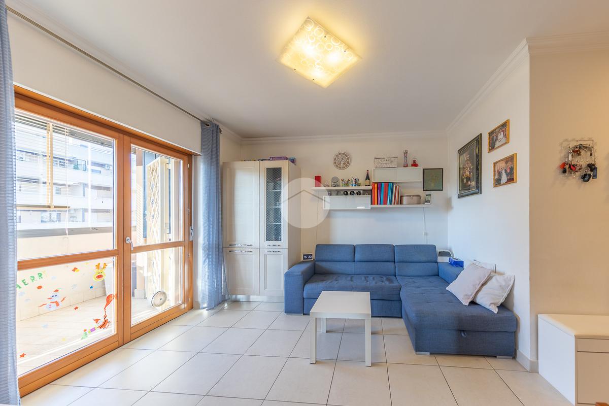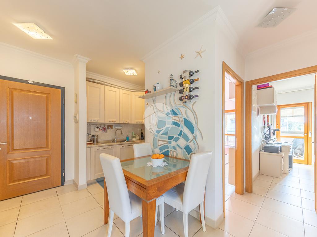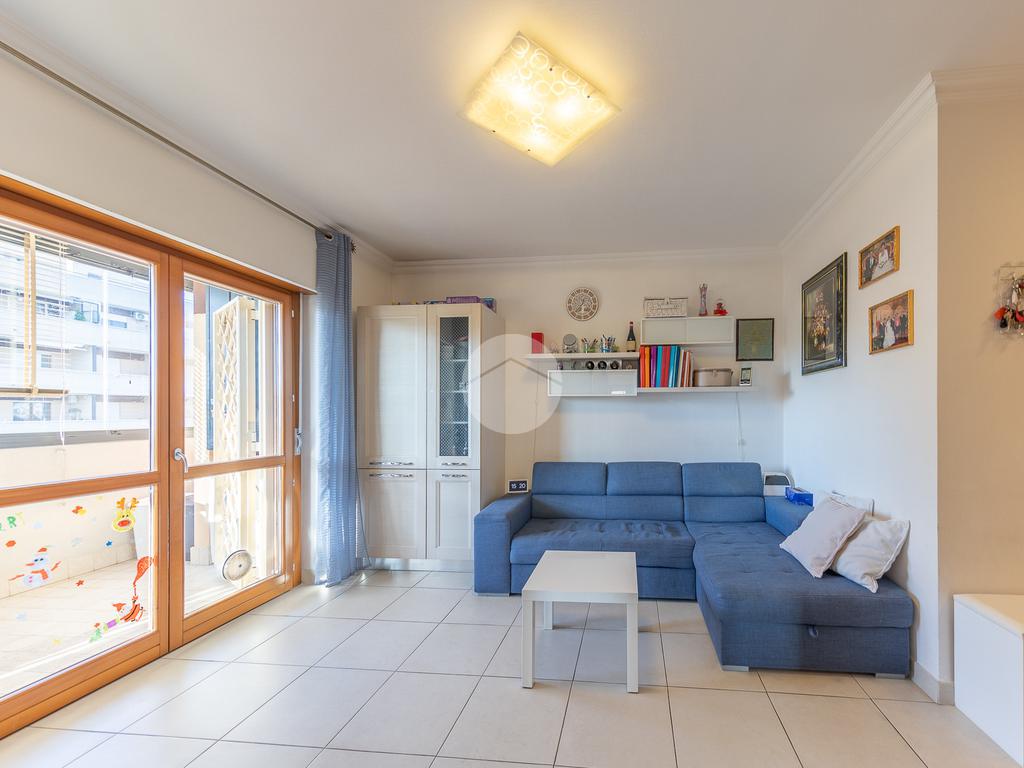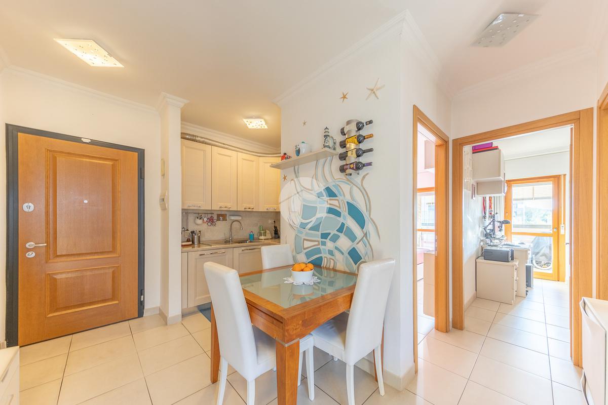 Uno dei punti di forza dell’appartamento è senza dubbio il grande terrazzo angolare, uno spazio esterno davvero vivibile grazie alla sua generosa metratura. Le ampie vetrate permettono di utilizzarlo comodamente anche durante i mesi invernali, trasformandolo in una piacevole estensione della zona giorno.