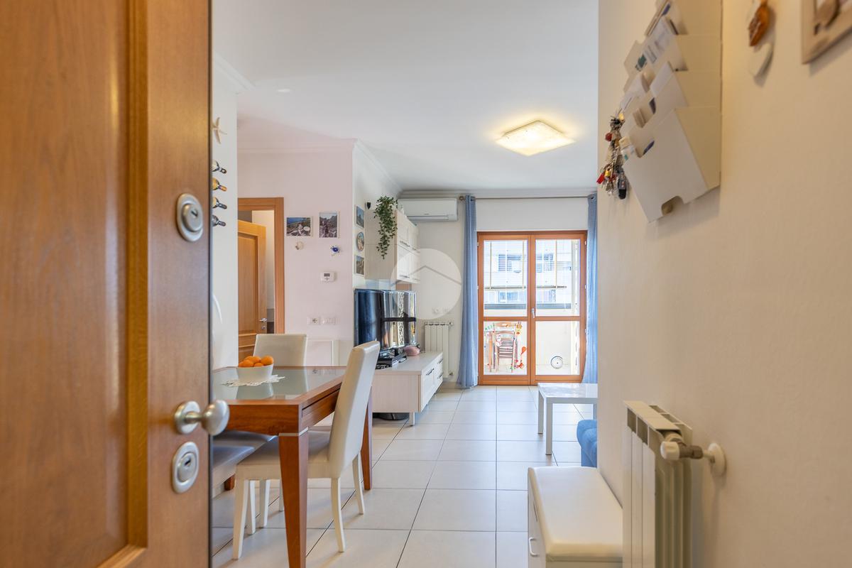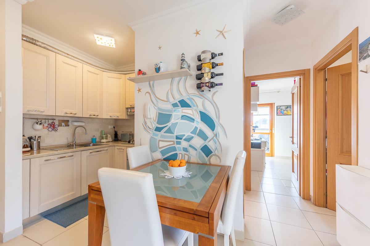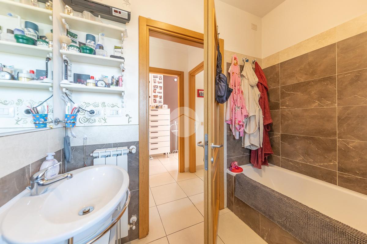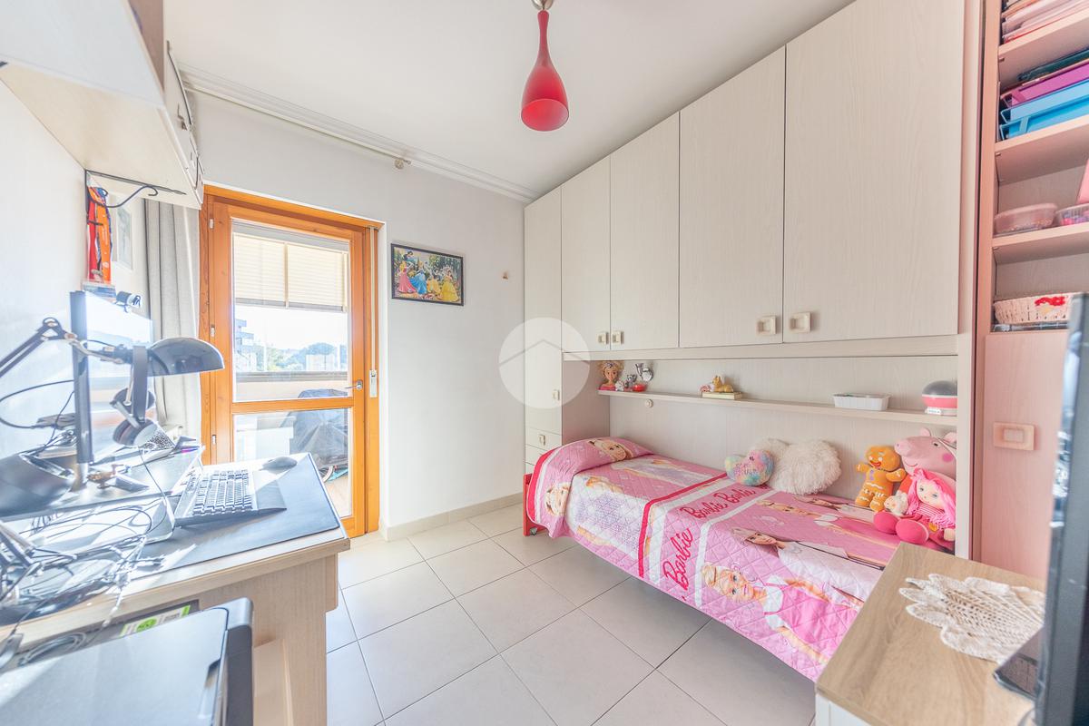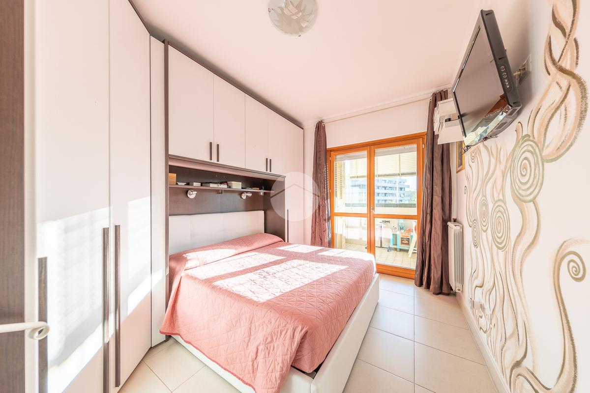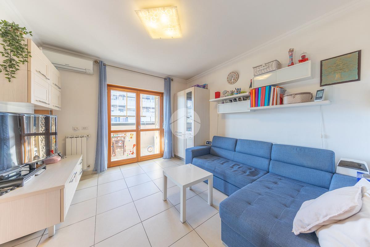 Uno dei punti di forza dell’appartamento è senza dubbio il grande terrazzo angolare, uno spazio esterno davvero vivibile grazie alla sua generosa metratura. Le ampie vetrate permettono di utilizzarlo comodamente anche durante i mesi invernali, trasformandolo in una piacevole estensione della zona giorno.