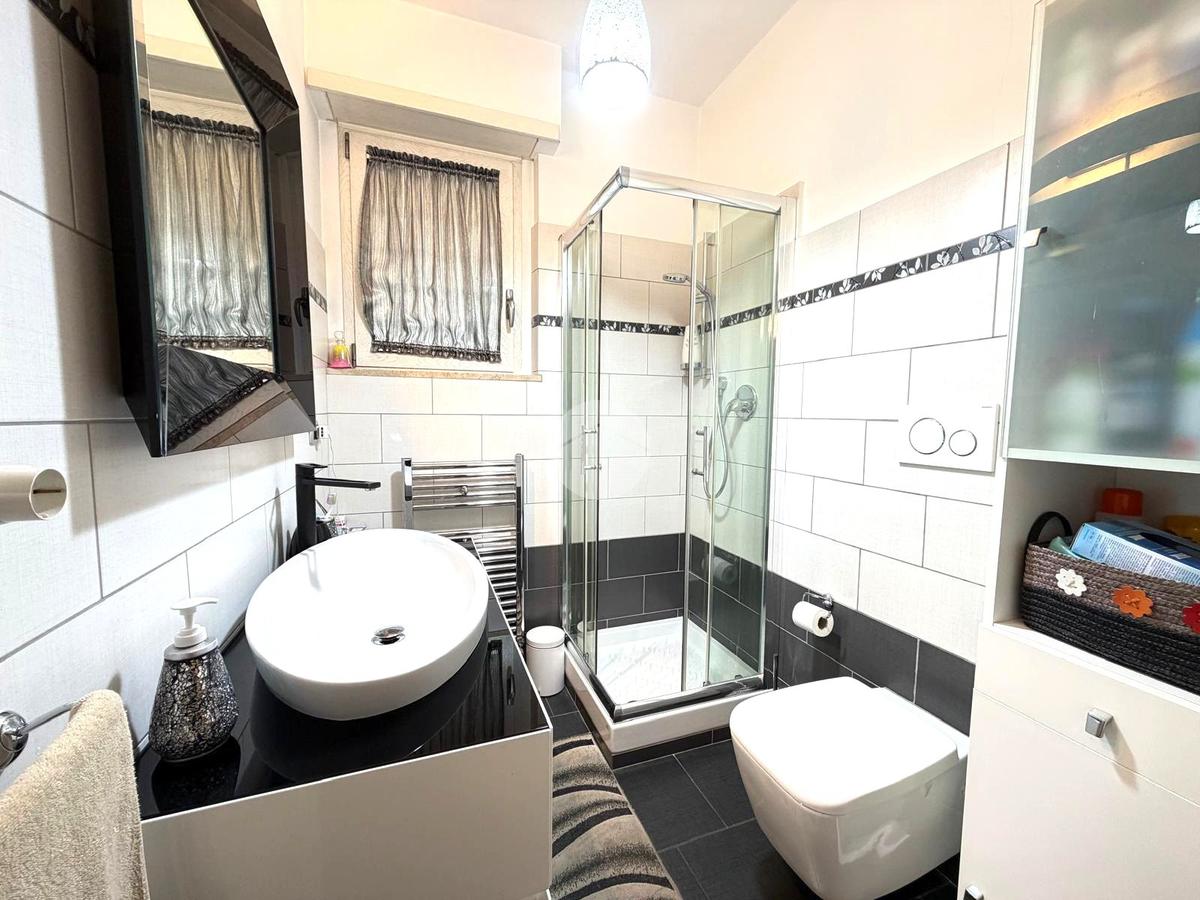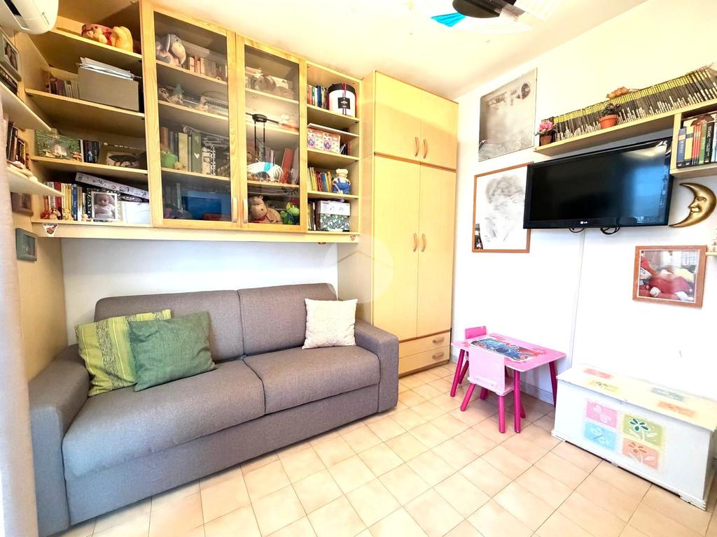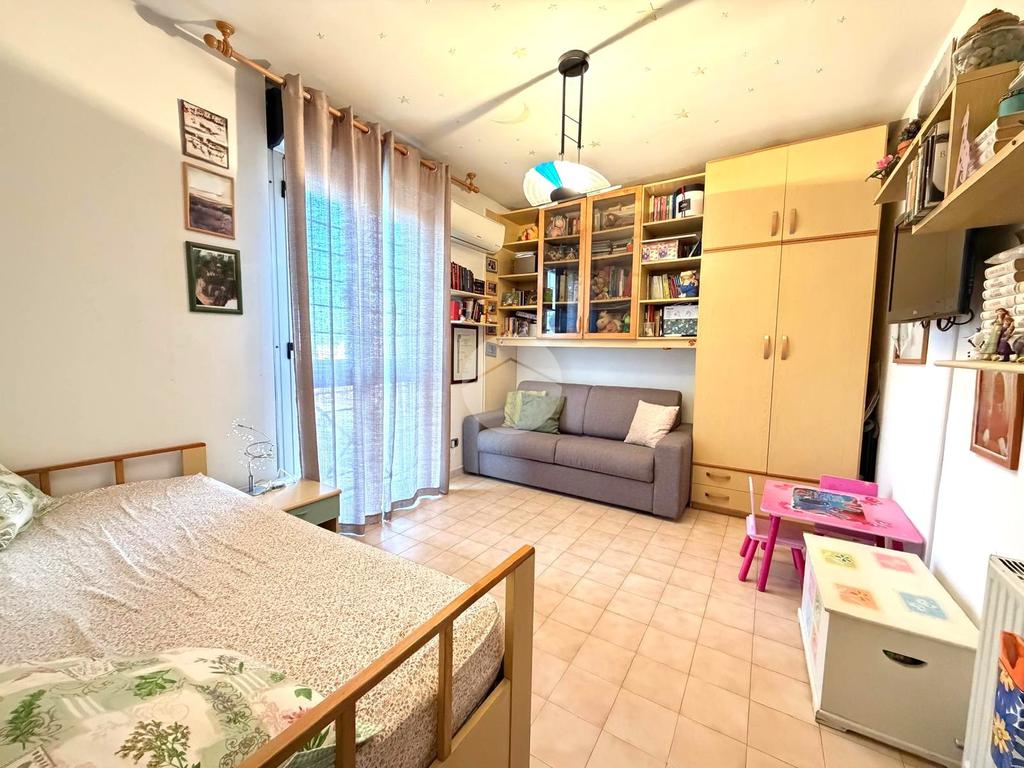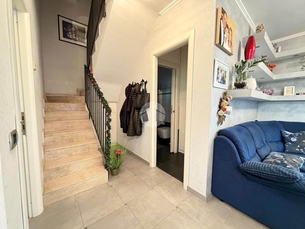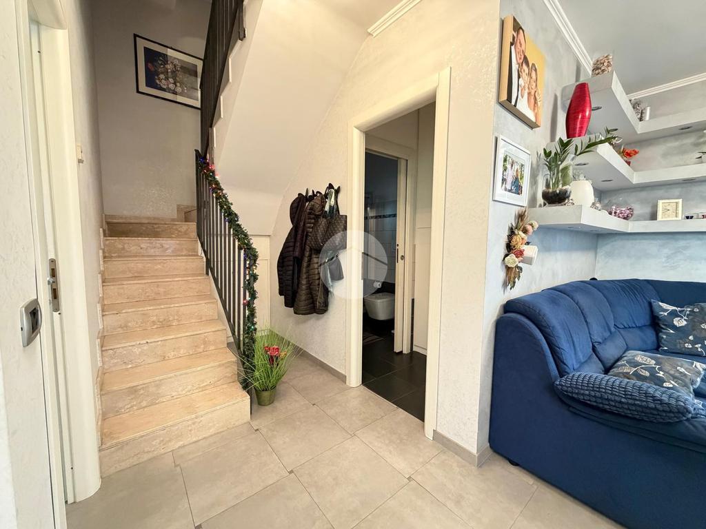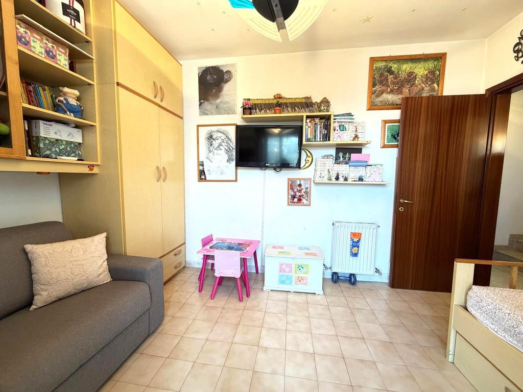 Il piano superiore ospita la zona notte, composta da una camera matrimoniale, una cameretta, una terza camera utilizzabile come studio o stanza ospiti, e un secondo bagno finestrato con doccia, pensato per garantire comfort e funzionalità.