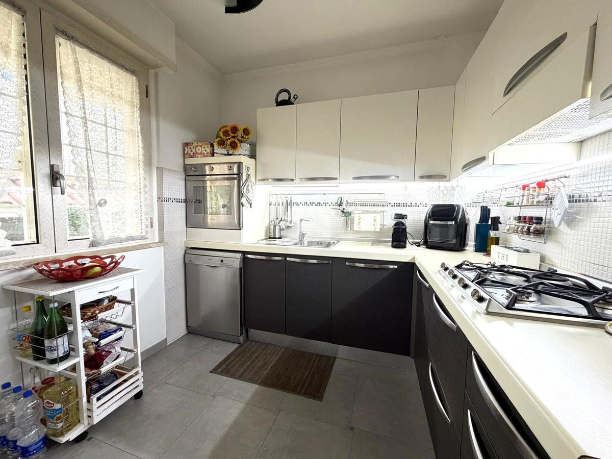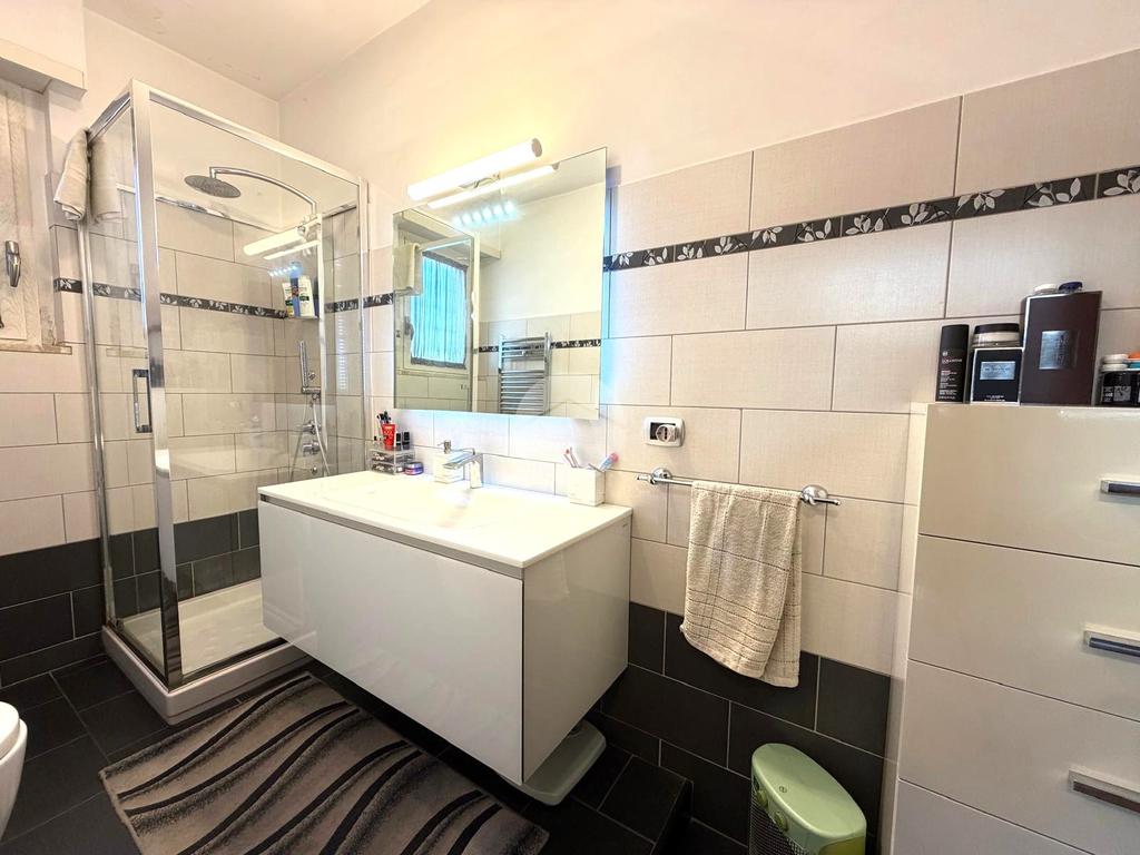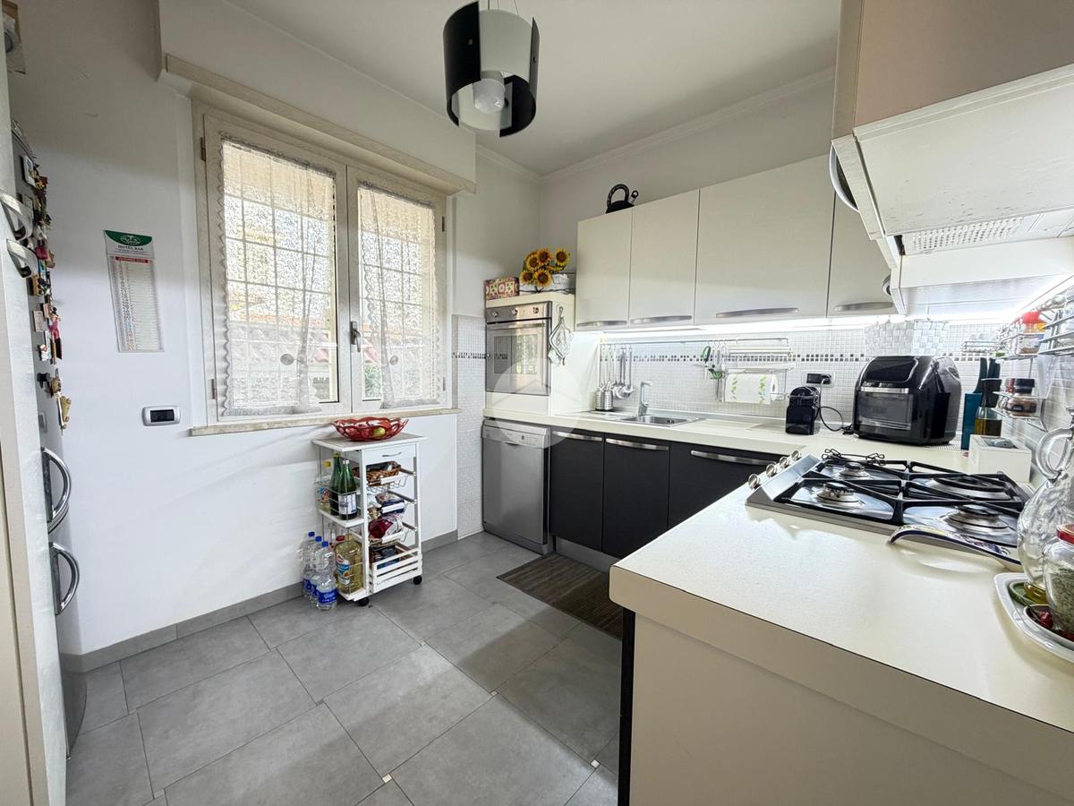 Al piano terra si accede a una zona giorno ben organizzata, composta da un accogliente soggiorno e da una cucina separata, entrambi con affacci diretti sul giardino. Completano il livello un pratico antibagno e un bagno finestrato con doccia, a servizio della zona giorno.
